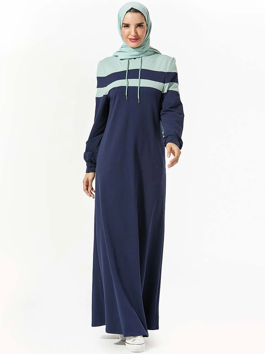 Abaya Dubai Long Sleeve Sports Dress Muslim Women Casual Maxi T-shirt Dresses Sweatshirt Kaftan Arab Caftan Robe Islamic Clothes