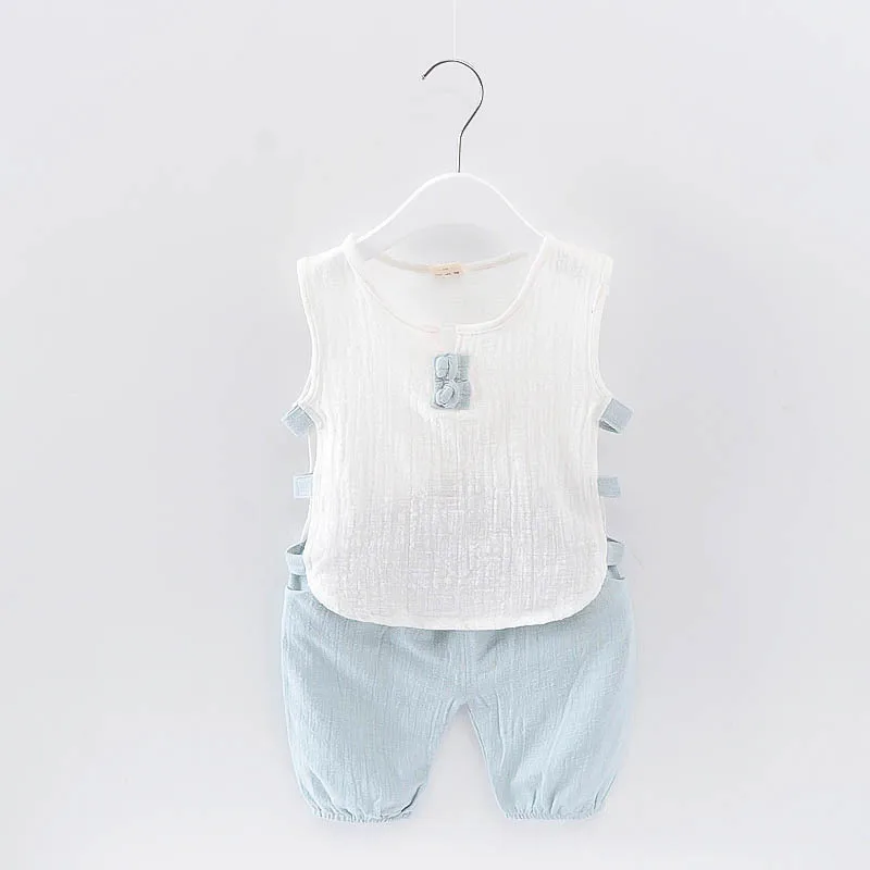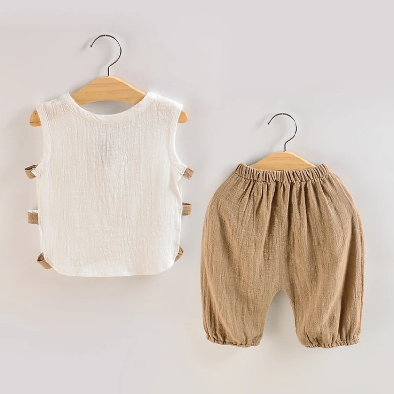 Cotton Linen Boys Girls Suit Summer Sleeveless Vest Shorts 2pcs Suit Children Set 2019 Clothing Kids Sets Bebe Toddler 0-5T