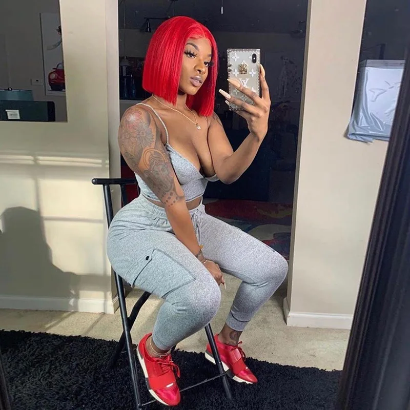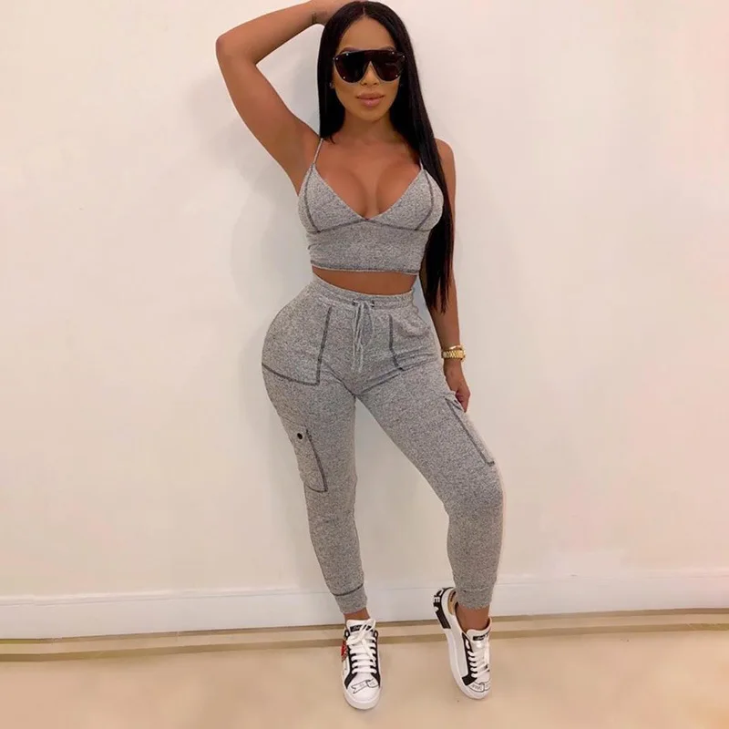 Cheap Price of BOOFEENAA Sexy Tracksuit Womens Clothing Gym Sports 2 Piece Outfits Crop Top Pants Matching Sets Sw
